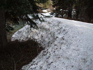 I know this is not what many hikers and campers want to hear especially with the long delay in opening the roads. These photos were taken right around the houses and across the creek this morning to show just how much snow is still here. I'll do my best to keep ya'll informed as I know the changes to the road conditions. For any of you planning early trips up this direction you might want to rethink or reschedule your plans...